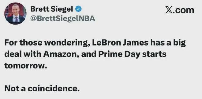 名记Siegel对此爆料,詹姆斯与亚马逊签约了一份大合同,这绝非偶然。那么若不是詹姆斯宣布把天赋带到亚马逊为未来铺路,大概率便是他向全世界宣告25-26赛季乃其球员生涯最后一舞。
